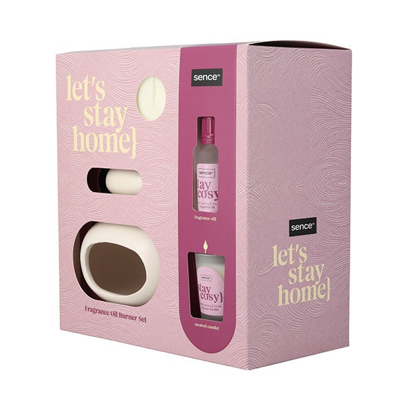 Melhore sua rotina pessoal com o conjunto "Lets Stay Home" da Sence. Esta requintada coleção inclui uma vela delicadamente perfumada, um óleo com fragrância e um design cativante para o nosso elegante queimador de óleo de cerâmica e uma luz quente, para acender seus sentimentos e conforto em sua casa.