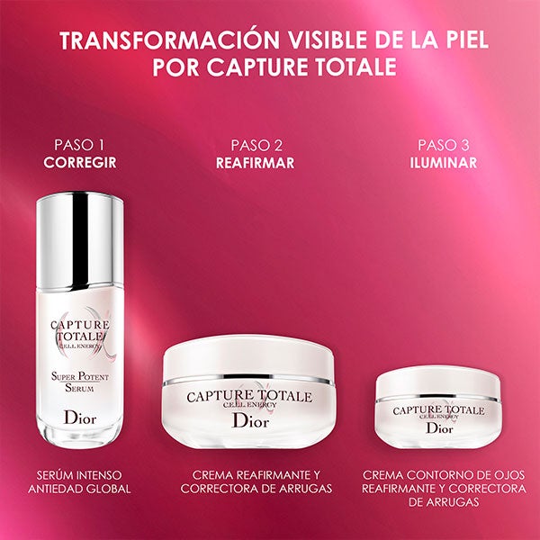 Consiga una piel visiblemente más firme y más joven con este trío de tratamiento para rostro y cuello Dior Capture, que incluye las dos últimas novedades de la colección. En 3 pasos, ofrezca a su piel los beneficios de un ritual de corrección antiedad de alto rendimiento: