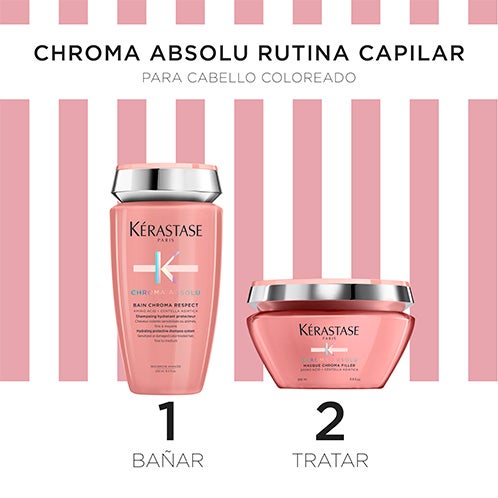 • Masque Chroma Filler, máscara preenchedora anti-porosidade para cabelo colorido sensibilizado e/ou danificado.