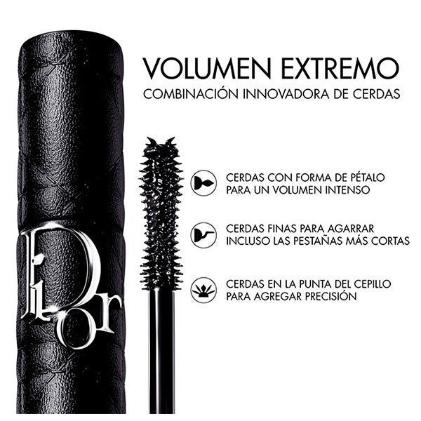 Diorshow Overvolume, na cor 090 Ultra Black. Esta máscara Dior oferece +440%* de volume extremo instantâneo combinado com uma definição cílio a cílio para um efeito desdobrado. Intensamente pigmentada, envolve os cílios com uma cor preta intensa que não transfere e com uma duração de 24 horas**.