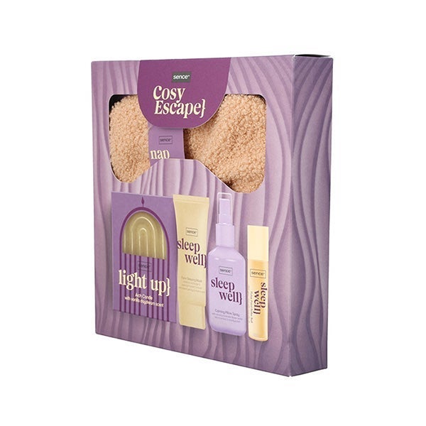 Tem dificuldade para adormecer? Mergulhe em um ambiente de relaxamento com nosso kit para dormir da Sence. Desde uma máscara suave e peluda até uma vela perfumada, um spray para o travesseiro e um roll-on de pulsos, este conjunto inclui tudo o que você precisa para dormir perfeitamente.
