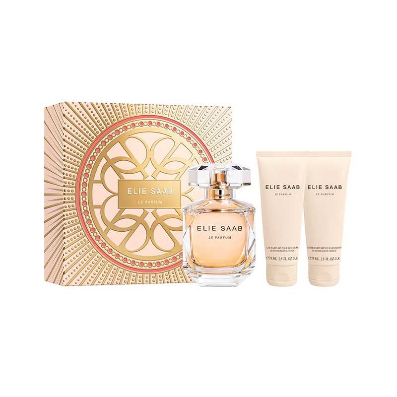 Uma maravilhosa viagem dourada na natureza encantada de ELIE SAAB, com um extraordinário set Le Parfum de presente perfumado de flores, decorado com a estampa de flores de alta costura de ELIE SAAB. Uma ideia de presente tão generosa quanto refinada, esta caixa apresenta a fragrância característica de Le Parfum como um adorno de alta costura.