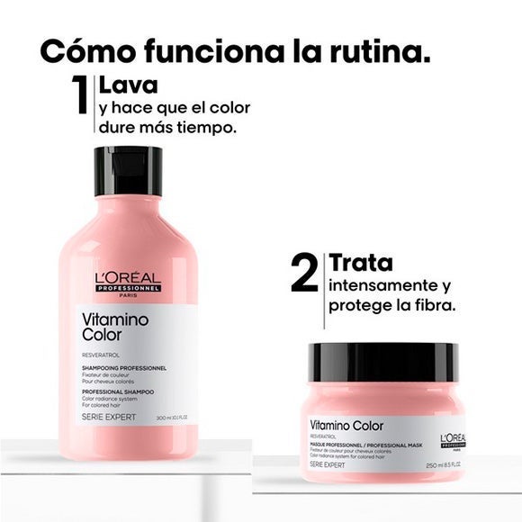 A máscara Vitamino Color de L'Oréal Professionnel, o cuidado capilar que revolucionou o mundo da coloração, aumentando o brilho e a proteção do cabelo. Uma fórmula única enriquecida com Resveratrol. Uma tecnologia rica para proteger a cor entre visitas ao salão de beleza.