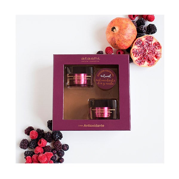 Atashi Cofre Antioxidante Creme Hidratante proteção SPF15 50ml + Creme Antienvelhecimento Redensificante 50ml.