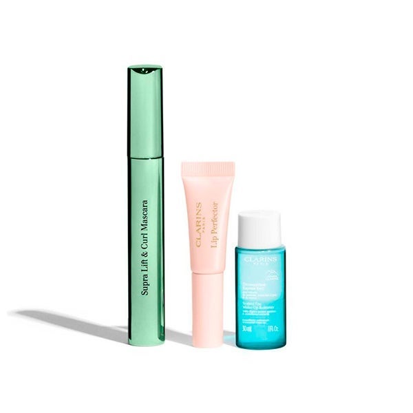 El Kit Mirada de Alta Definición de Clarins es el set ideal para realzar e iluminar la mirada con un cuidado completo de tratamiento y maquillaje. Incluye un desmaquillante exprés, la Máscara Supra Lift & Curl para unas pestañas curvadas y definidas, y un embellecedor labial para unos labios irresistibles.