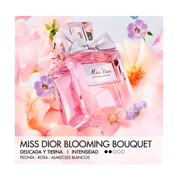 - Miss Dior Blooming Bouquet, 50 ml. Uma trilha floral que combina as notas de rosa damascena com os acordes de peônia, tudo elevado por um toque de patchouli. Seu frasco decididamente couture é adornado com um delicado laço de fios prateados e uma etiqueta com efeito de tecido.