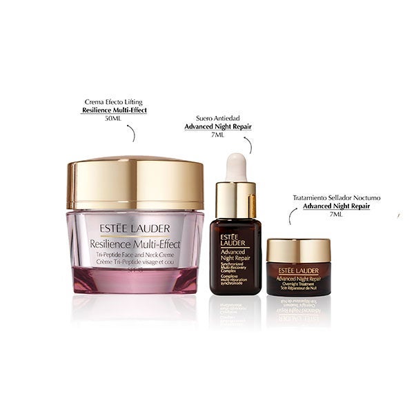 ESTÉE LAUDER apresenta este estojo edição limitada de Resilience Multi-Effect com uma miniatura do Sérum Advanced Night Repair e miniatura do Tratamento Selador Noturno. Avaliado em 204€.