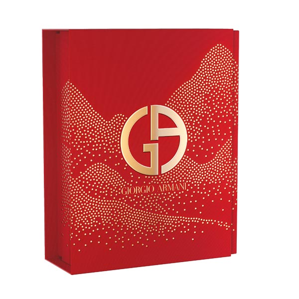 Un obsequio de alta costura, creado con papel de alta calidad y estampado con perlas en relieve 3D sobre el característico rojo de Armani. Una caja pensada y diseñada para ser guardada y reutilizada.