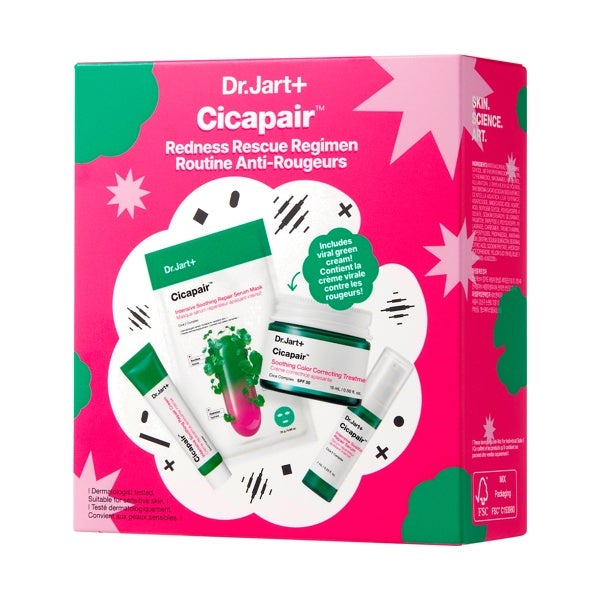 Os produtos Cicapair™ são icônicos para a pele sensível e com vermelhidão. Este conjunto de cuidados com a pele coreano contém uma máscara facial calmante, um sérum reparador da barreira cutânea e um creme hidratante com extrato de Centella Asiática. Inclui o corretor de cor, um híbrido entre maquiagem e tratamento que corrige instantaneamente a vermelhidão visível, as imperfeições e uniformiza o tom da pele.