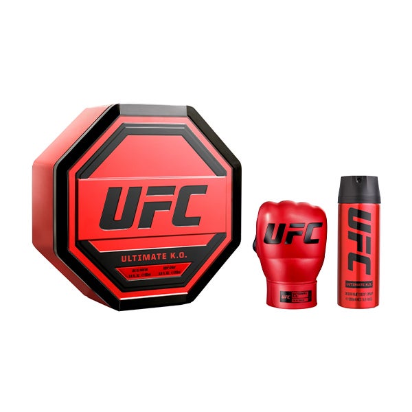 O estojo UFC Ultimate K.O. Eau de Parfum é uma celebração do poder decisivo e da energia imparável que define os verdadeiros campeões. Inspirada na intensidade do octógono, esta fragrância encarna a força, a precisão e a confiança de quem domina cada momento.