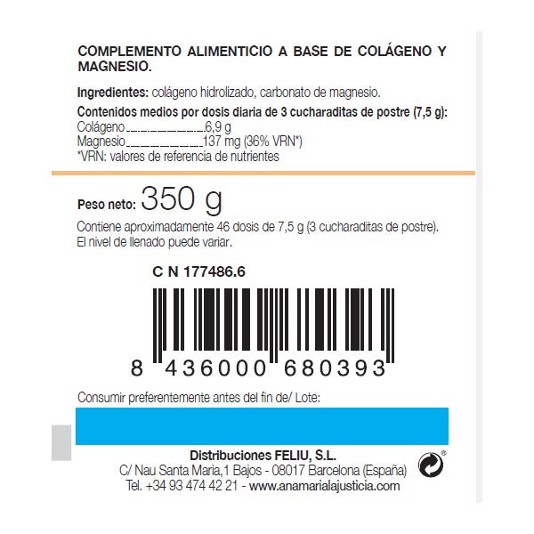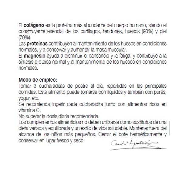 Ingredientes: colágeno hidrolizado, carbonato de magnesio.
