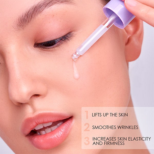 O soro ajuda a reduzir os sinais visíveis da idade, intensifica a produção do próprio colágeno da pele, funciona como preenchimento, uniformiza e preenche as rugas. Fórmula intensiva com princípios ativos: o colágeno assegura a firmeza, elasticidade, saturação e tonificação da pele.