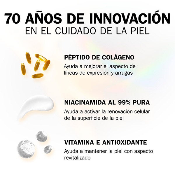 Junto com a vitamina B3, a fórmula atua rapidamente para estimular a pele com uma hidratação intensa que dura 24 horas e atua com o tempo para suavizar a textura da pele e recuperar sua barreira protetora e assim conseguir uma pele forte e radiante.