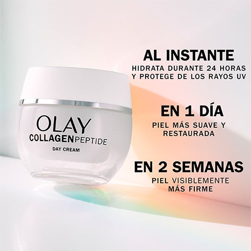 Revele uma pele visivelmente mais forte e radiante em 14 dias com o creme de dia Olay Regenerist Collagen Peptide24 com SPF 30.