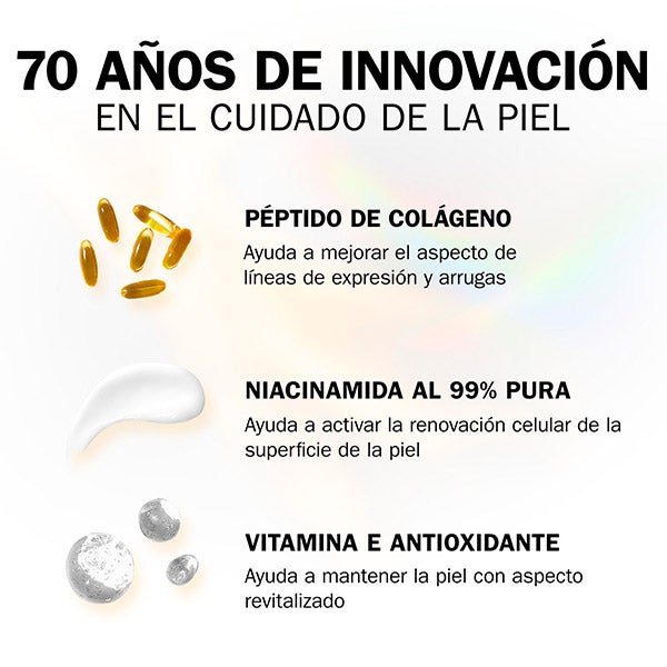 Junto com a vitamina B3, a fórmula atua rapidamente para estimular a pele com uma hidratação intensa que dura 24 horas e age ao longo do tempo para suavizar a textura da pele e recuperar sua barreira protetora, conseguindo assim uma pele forte e radiante.
