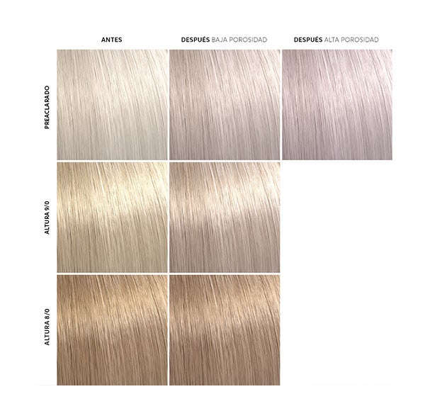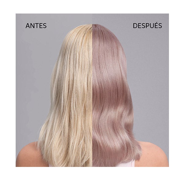 Máscara condicionadora para uma renovação temporária da cor. Neutraliza os amarelos em cabelos loiros com um acabamento lilás.