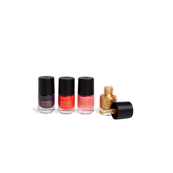 ¡Dê vida às suas unhas com nosso pacote de unhas da coleção Colorful! Descubra nosso pacote de 4 esmaltes em tons de roxo escuro, vermelho, rosa e dourado.