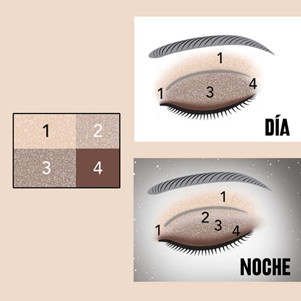 Echa un vistazo a las instrucciones paso a paso que se incluyen en la paleta para obtener looks sencillos de maquillaje tanto para el día como la noche.