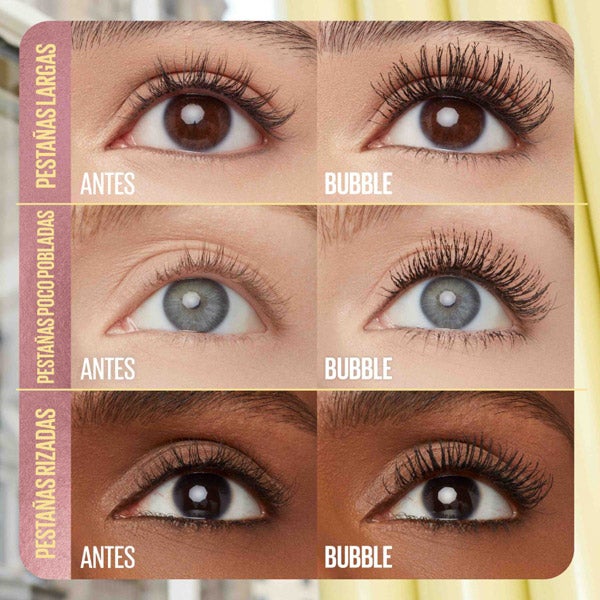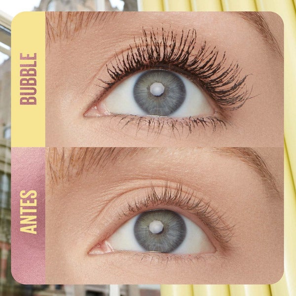 A máscara Colossal Bubble oferece um volume leve que infla 100% dos seus cílios e uma separação impecável.