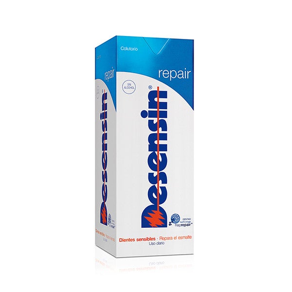 Desensin® repair colutório, formulado com hidroxiapatita ativa, repara o esmalte dental e graças à sua ação dessensibilizante, combate os dentes sensíveis.