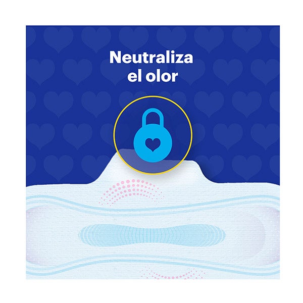 Seu sistema único dual com Pérolas Ativas elimina odores até 0% e absorve o fluxo para que você se sinta até 100% limpa.