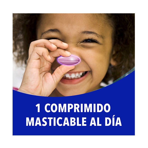 MODO DE USO: Crianças (4+) e adultos, 1 comprimido por dia durante ou imediatamente após qualquer refeição.