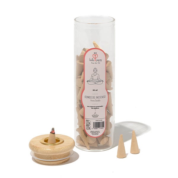 Desfrute de um ambiente relaxante com nossos cones de incenso de aroma sândalo. O pacote inclui 80 unidades e um elegante suporte de madeira para uma combustão segura. Perfeitos para meditação, yoga ou para aromatizar sua casa com uma fragrância quente e envolvente.