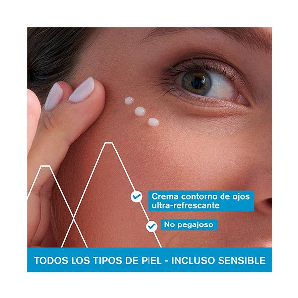 Graças ao Sulfato de Dextrano incluído na fórmula, o olhar parece descansado. A aparência das bolsas e olheiras é atenuada. Combinado com uma textura ultra-refrescante, o contorno dos olhos é iluminado para conseguir uma tez mais luminosa.