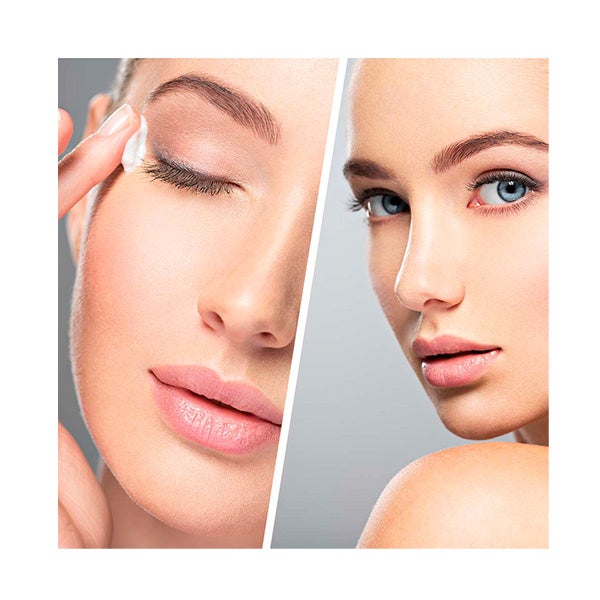 Aplicar creme sobre a pele limpa e seca. Dê tapinhas suaves ao redor do contorno do olho, evitando a área imediata do olho.
