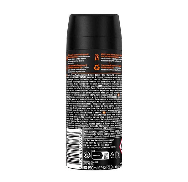 Ingredients: Alcohol Denat., Butane, Isobutane, Propane, Zinc Neodecanoate, Parfum, Isopropyl Myristate, Cinnamyl Alcohol, Citral, Citronellol, Coumarin, Eugenol, Geraniol, Limonene, Linalool.