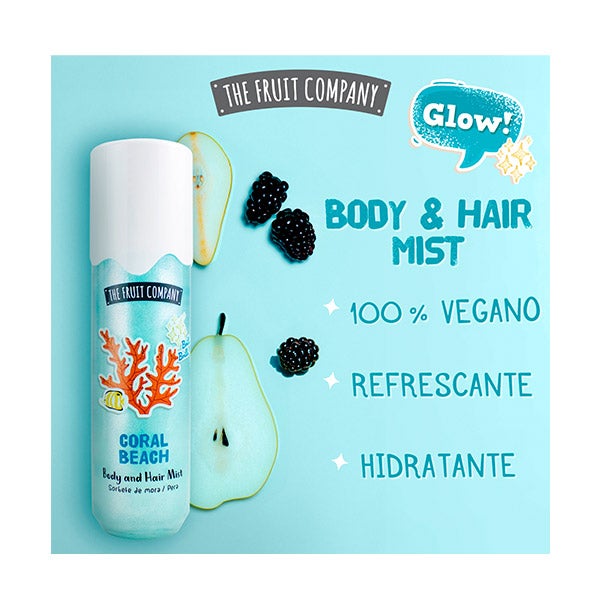 Novo Body and Hair Mist Coral Beach, uma deliciosa combinação de frescor e brilho na sua pele. Aroma refrescante de sorvete de amoras e pera que fará você sentir o prazer de estar frente ao mar nos dias de verão. Com um toque de brilho brilho, este mist não só hidrata e refresca sua pele e cabelo, também os ilumina. Descubra a magia de Coral Beach e leve consigo o frescor do verão para onde você for com The Fruit Company!