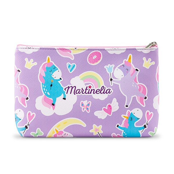 Necessaire impermeável com zíper protagonizado por um lindo unicórnio para levar todos os essenciais dos pequenos da casa.