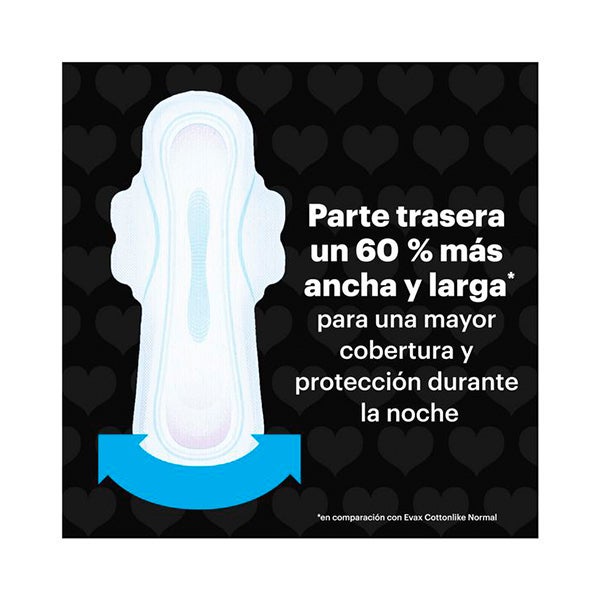 São mais largos atrás para uma maior cobertura (vs. absorventes Evax Cottonlike Normal) onde mais precisa, seja qual for sua posição ao dormir.