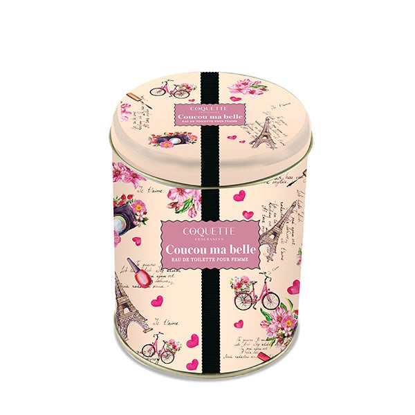 Colecione as latas das fragrâncias da Coquette ao mais puro estilo parisiense. Coucou ma belle é uma fragrância frutada.