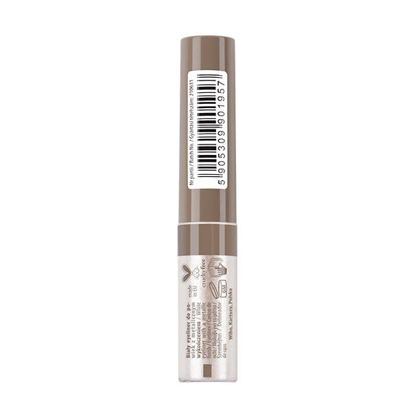 Delineador de olhos disponível em marrom e em branco com acabamento metálico.