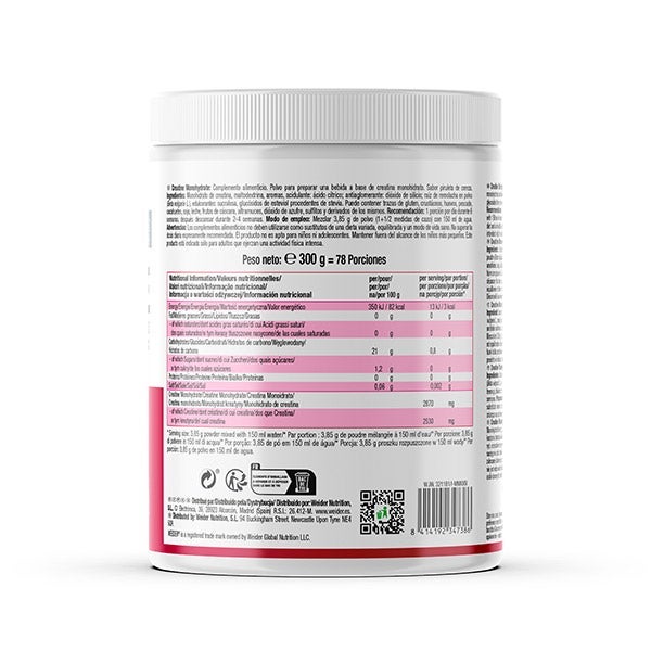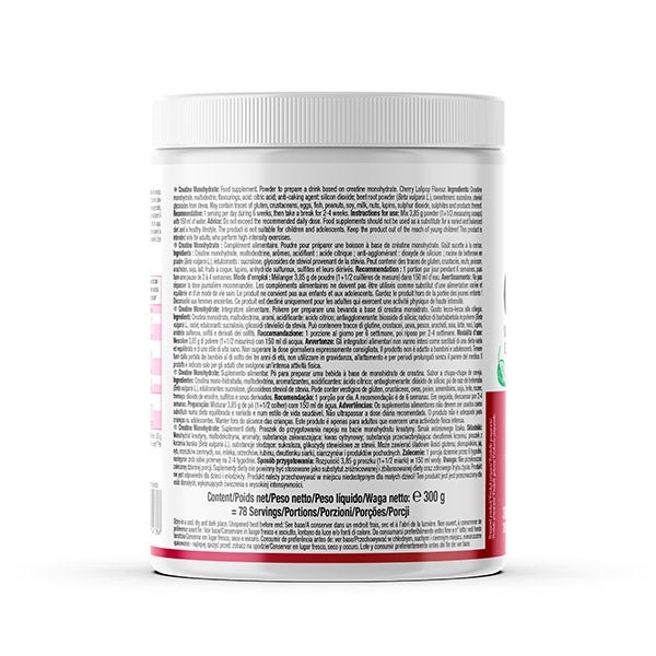 Monohidrato de creatina, maltodextrina, aromas, acidulante: ácido cítrico; antiaglomerante: dióxido de silicio; raíz de remolacha en polvo (Beta vulgaris L.), edulcorantes: sucralosa, glucósidos de esteviol procedentes de stevia.