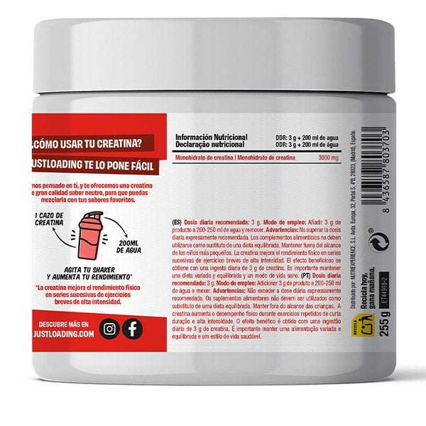 Monohidrato de creatina (100%). Puede contener trazas de GLUTEN, HUEVO, PESCADO, LECHE, SOJA y/o derivados de los mismos.