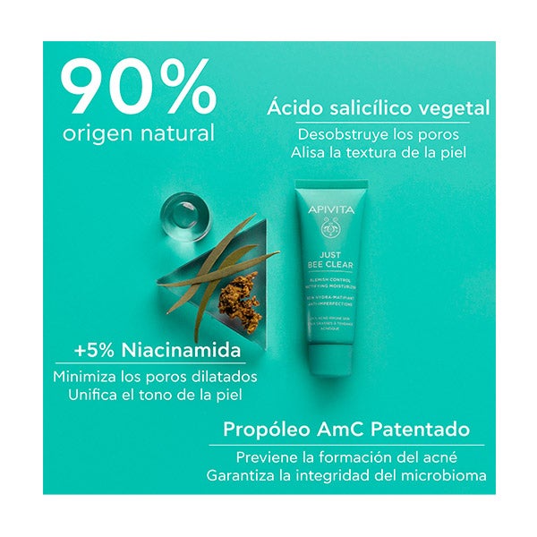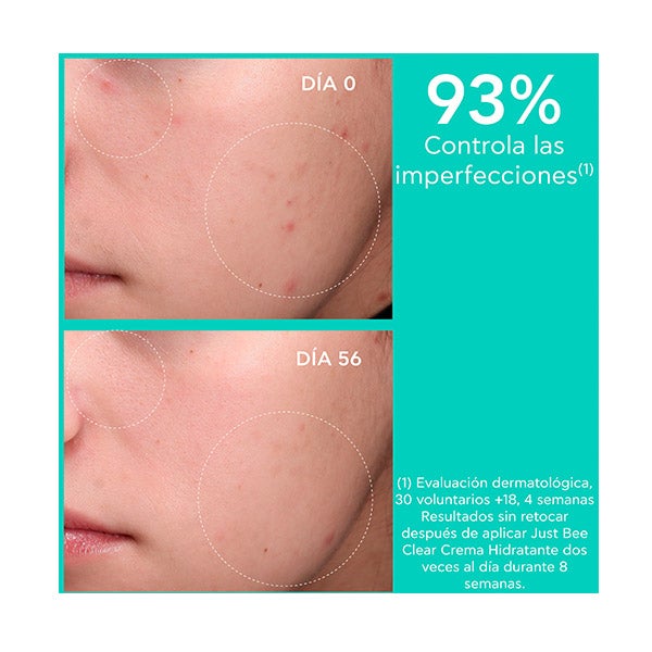 Para maximizar resultados, aplicar o hidratante depois de JUST BEE CLEAR Gel Limpiador Purificante e Loção Purificante Minimizadora de poros.
