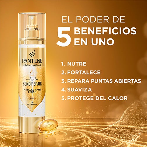 UM CABELO MAIS FORTE E SAUDÁVEL com Molecular Bond Repair da Pantene; as pérolas Nutri Pro-V se dissolvem instantaneamente, liberando nutrientes em profundidade; para obter melhores resultados, combine com toda a linha Molecular Bond Repair