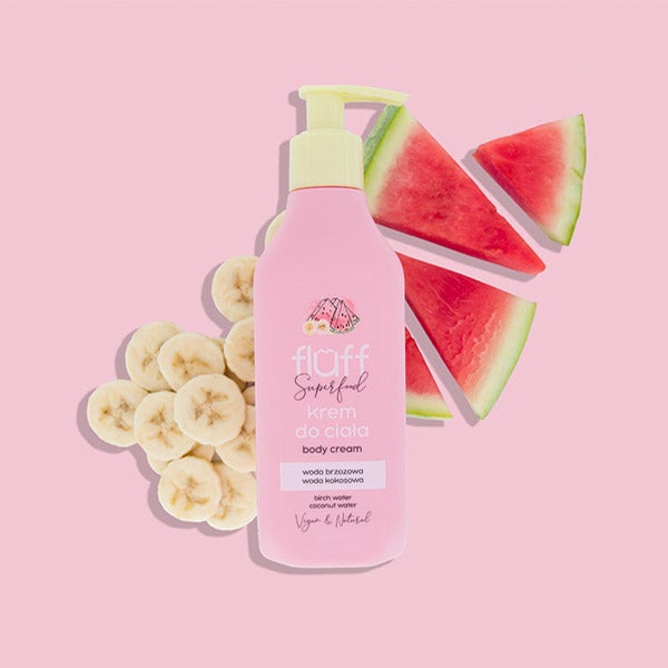 A pele torna-se suave, iluminada e nutrida graças ao extrato de banana e ao extrato de melancia.