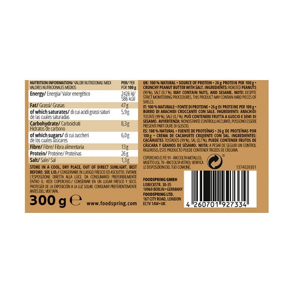 100% NATURAL*FONTE DE PROTEÍNAS*26G DE PROTEÍNAS POR 100G*CREME DE AMENDOIM CROCANTE COM SAL.