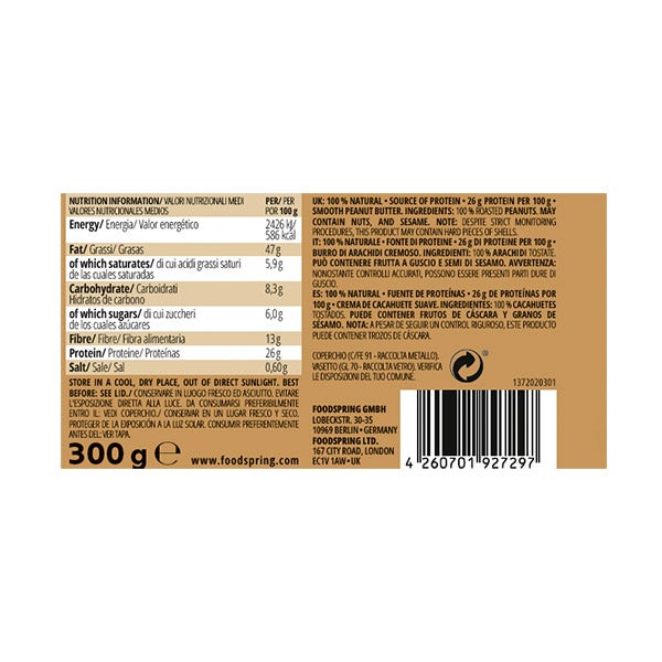 100% NATURAL*FONTE DE PROTEÍNAS* 26G DE PROTEÍNAS POR 100G*CREME DE AMENDOIM SUAVE.