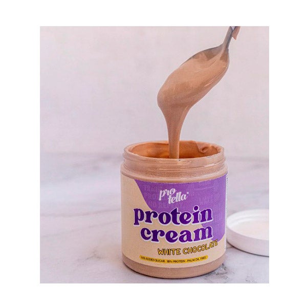 Protein Cream White Chocolate é um creme de chocolate branco com avelãs torradas que nos dará um aporte extra de energia.