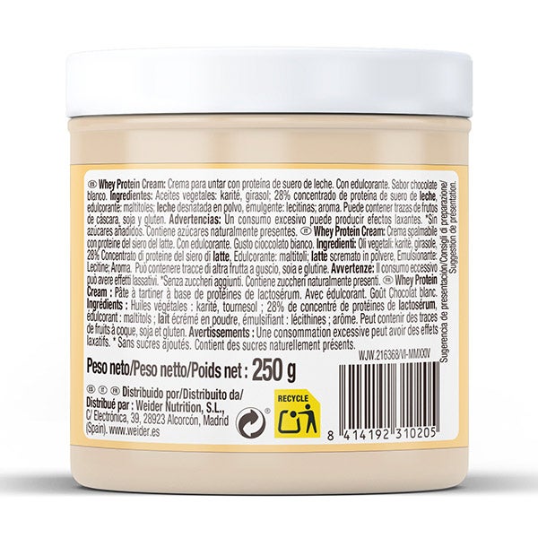 Whey Protein Creme é um delicioso creme de chocolate branco para espalhar, feito com avelãs autênticas e proteína de soro de alta qualidade, ideal para te proporcionar um momento de prazer enquanto cuida da sua forma. Além disso, esta nova versão melhorada não contém óleo de palma.