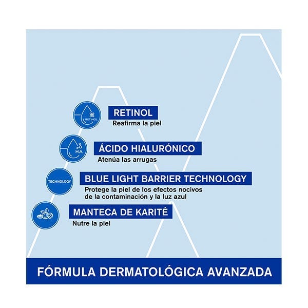 Sua fórmula enriquecida com ativos antienvelhecimento [retinol** + ácido hialurônico] diminui a aparência de rugas e linhas de expressão, combate a perda de tônus e a falta de firmeza.
