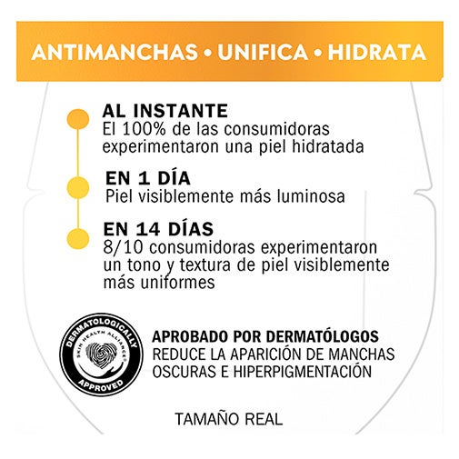 O creme facial Olay Regenerist Vitamina C + AHA 24 proporciona uma pele mais luminosa em apenas 1 dia e um tom e textura visivelmente mais uniformes em 14 dias.