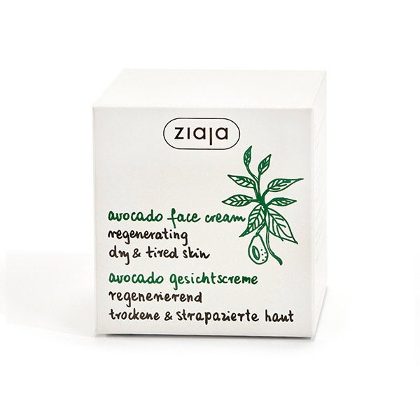 Creme facial regenerador com óleo de abacate para peles desidratadas e sem brilho.