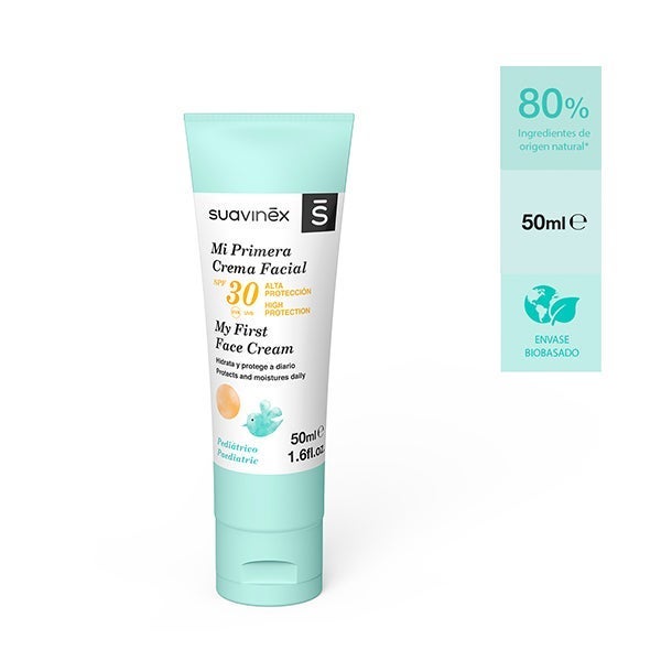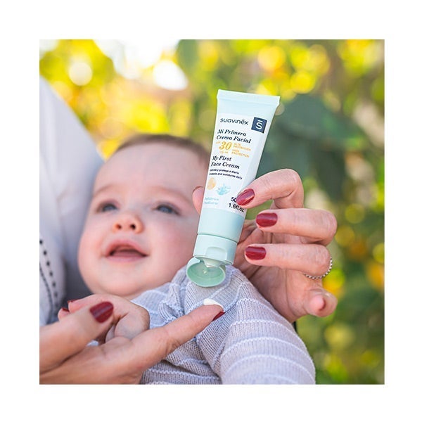 A nova creme facial Suavinex com SPF30 hidrata e protege a delicada pele do rosto, especialmente a clara e sensível, contra agressões externas como a poluição, o frio ou o vento.