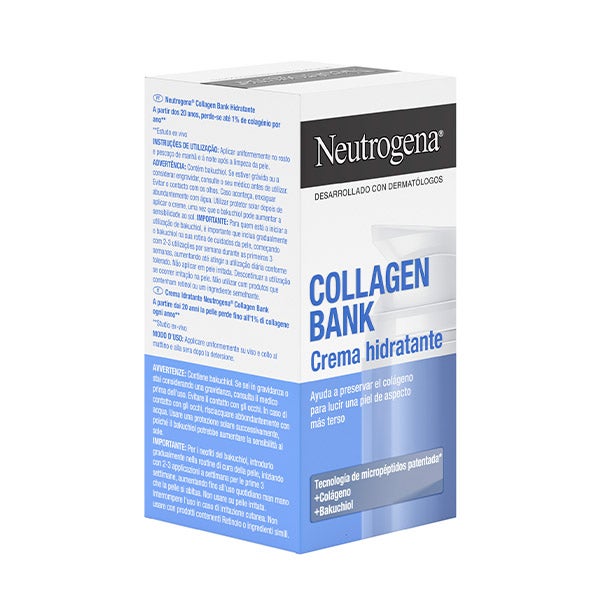 A partir dos 20 anos, a pele perde até 1% de colágeno por ano. Neutrogena Collagen Bank Creme Hidratante foi desenvolvida com dermatologistas e é até 2x mais eficaz* preservando o colágeno natural que sua pele precisa para se manter firme, elástica e luminosa.
