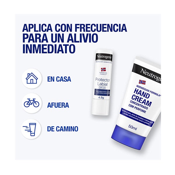 A creme para mãos perfumado concentrado de fórmula norueguesa da Neutrogena proporciona o maior alívio para as mãos secas e rachadas instantaneamente.